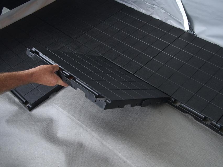 Når man opholder sig meget i forteltet, er det rart at gulvet er plant, og at gulvtæppet ligger fladt. IsabellaFloor har mange fordele. Det er let at samle helt uden brug af værktøj, idet elementerne er forsynet med låsetappe og samles som et byggeklodssystem. Det er let at opbevare og har lang levetid. IsabellaFloor har også det lille ekstra, at man kan købe skråstykker og -hjørner, hvilket ikke kun giver en flot finish, men også er en praktisk foranstaltning, til f.eks. kørestolsbrugere eller barnevogne.