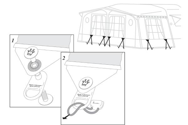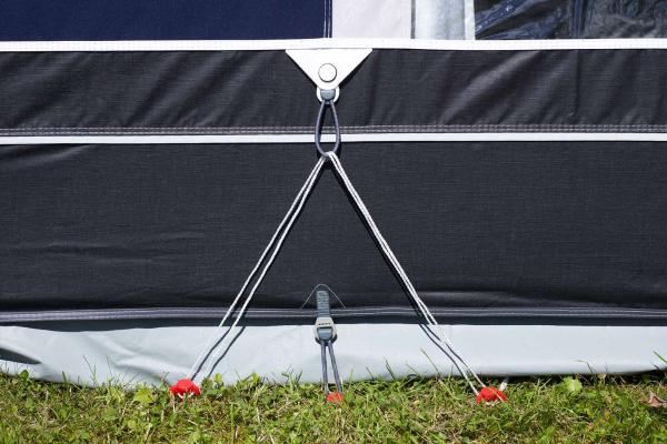 Dzięki IsaLink możesz szybko i łatwo zabezpieczyć przedsionek Isabella przed wiatrem. IsaLink montuje się bezpośrednio do specjalnych uchwytów przeciwwiatrowych na przedsionku, co pozwala na dodatkowe napięcie materiału podczas burzy lub gdy jesteś stałym użytkownikiem pola namiotowego. Małe uchwyty są rozmieszczone w kilku miejscach na przedsionku i pełnią funkcję dyskretnych punktów wzmacniających. Dzięki elastycznej gumie IsaLink zapobiega uszkodzeniom materiału, ponieważ ugina się przy silnych podmuchach wiatru. Efekt – dobrze naciągnięty i stabilny przedsionek.
