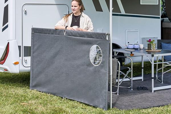 Stwórz stylowy i harmonijny kemping z 2-skrzydłowym parawanem Grey marki Isabella. Jego prosty, jednokolorowy design z klasycznym „okienkiem” Isabella idealnie pasuje do przyczep kempingowych, kamperów i vanów.