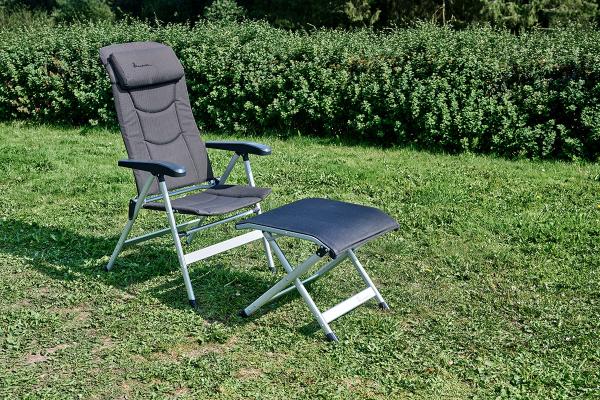 Siedzisko pokryte jest wytrzymałym poliestrem z powłoką PVC oraz lekką piankową wyściółką, która tworzy miękką i przyjemną powierzchnię. Materiał jest łatwy do utrzymania w czystości i przystosowany do użytku na zewnątrz. Podnóżek Ran dostępny jest w kolorze Dark Grey, który dyskretnie dopasowuje się do większości przestrzeni kempingowych i komponuje się z wieloma krzesłami Isabella.