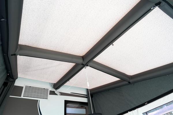 Ventura AIR Lux to elastyczny przedsionek pompowany i werandowy opracowany specjalnie dla samochodów kempingowych i campervanów. Poduszka łącząca montowana jest w taki sposób, aby szczelnie dopasować się do pojazdu. Dzięki inteligentnemu systemowi powietrznemu, w którym wszystkie przewody powietrzne są połączone, możesz szybko nadmuchać z jednego zaworu, zminimalizować ryzyko nieszczelności i cieszyć się przedsionkiem, który pozostaje stabilny nawet przy zmianie pogody. Lux jest dostępny w trzech szerokościach (260, 330 i 400 cm) i ma wysokość montażową 240-260 cm.