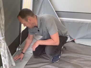 Przedsionki są często szersze wewnątrz, przy przyczepie kempingowej, niż z przodu. Dlatego dobrze jest wiedzieć, jak jest powierzchnia podłogi przed zakupem wykładziny lub innej podłogi.