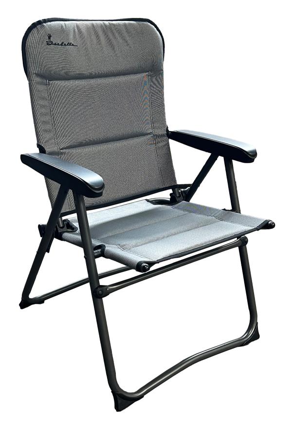 Krzesło Nanna to lekkie i wygodne krzesło kempingowe, idealne do przedsionka, na taras lub na relaks wokół Camp-let. Jego kompaktowy rozmiar i niska waga sprawiają, że łatwo je zabrać – czy to na poranną kawę pod przedsionkiem, czy na odpoczynek pod gołym niebem. Oparcie można ustawić w 3 pozycjach, dzięki czemu zawsze znajdziesz wygodną pozycję – niezależnie od tego, czy jesz, czytasz, czy relaksujesz się na słońcu. Krzesło wytrzymuje do 120 kg.