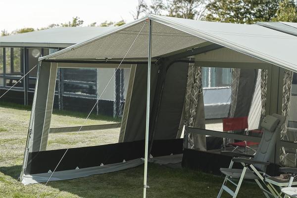 Odkurz lub wyczysc suchy material namiotu za pomoca szczotki. Nastepnie przetrzyj go wilgotna sciereczka.